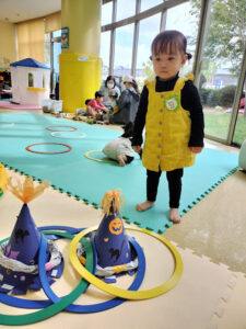 10月25日(水)の キッズタイムには 12組の親子の皆さんが 参加してくださいました。 ハロウィンの帽子を作り
